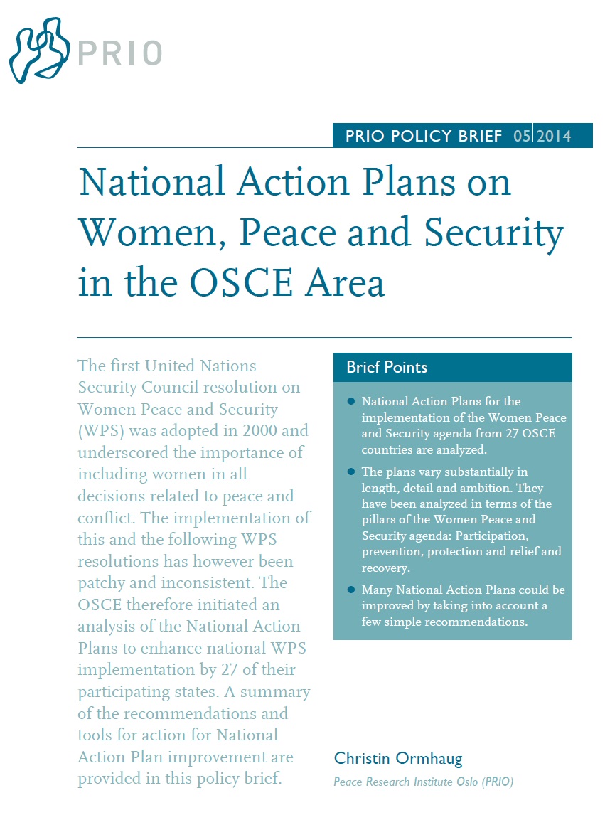 Lead researcher on an OSCE study that compares the development of National Action Plans (NAPs) regarding the implementation of UN Security Council resolution 1325 on Women, Peace and Security. The aim of the study is to compare different NAPs and provide a toolkit for other countries within the region which are working on their own plans.